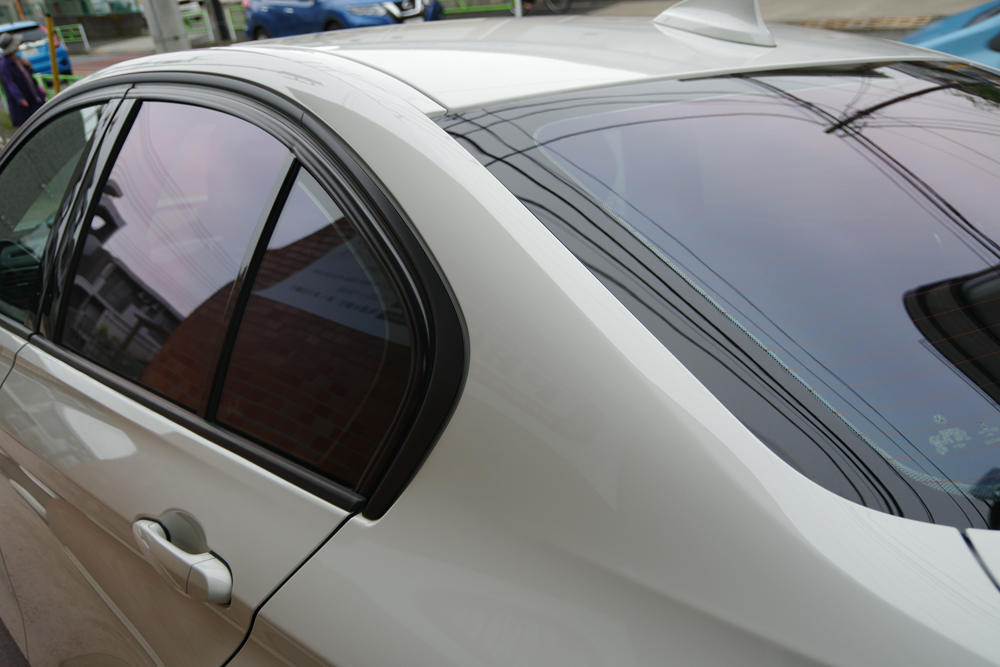 見せていただくと確かに運転席・助手席とリヤ全面にフィルムが貼られていたのですが、