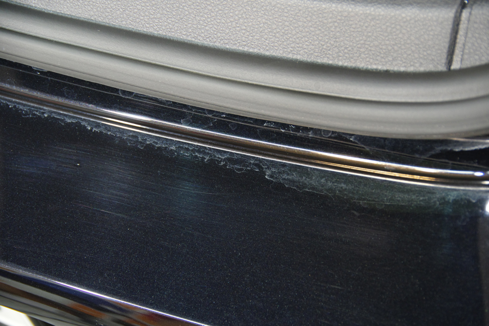 このリヤハッチの下、バンパーの上部にこういうシミが出来ているのは、