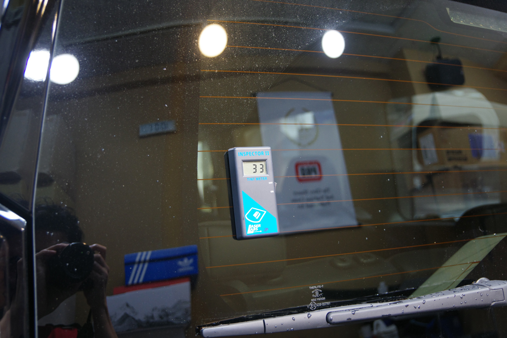 リヤガラスの透過率は33%と若干薄めですが、