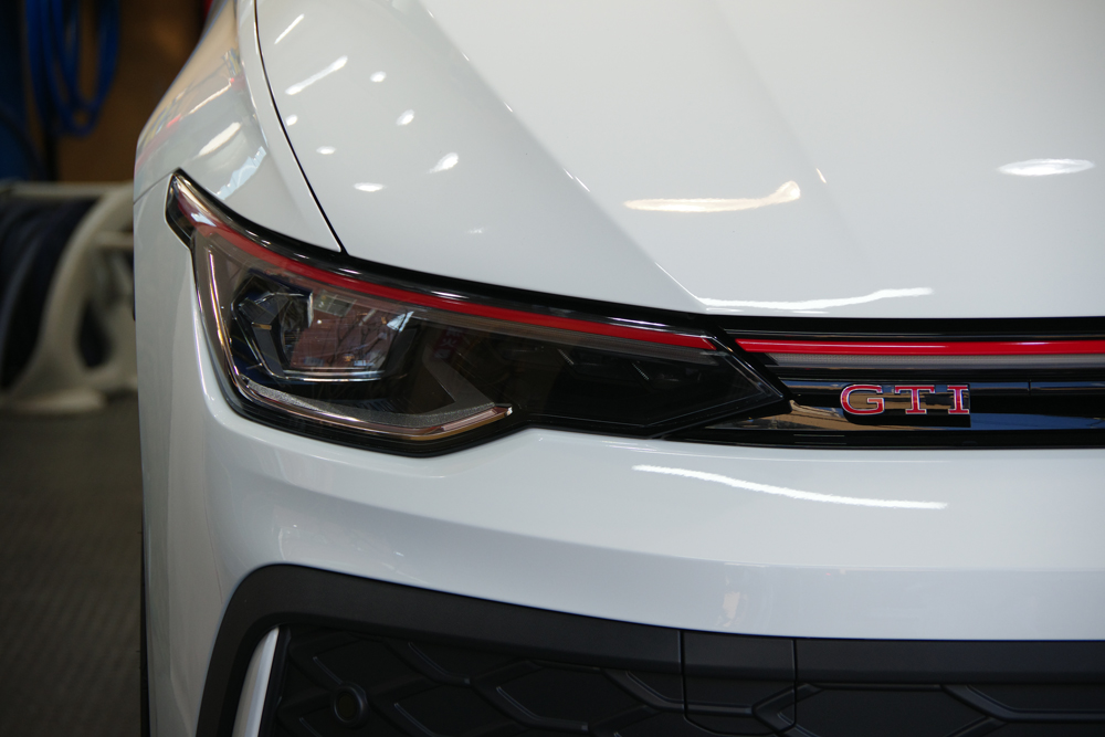 以前のゴルフ8 GTiで施工させていただいたヘッドライトのプロテクションフィルムと、